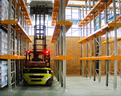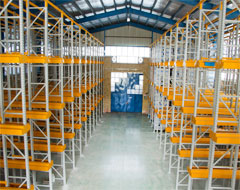 سيستم قفسه بندی خودراهرو تشكيل شده از راهرو هايی است كه علاوه بر محل بارگذاری پالت ها، مسیر تردد لیفتراک نیز می باشد.در اين سيستم مناسب برای كالاهای می باشد كه دارای محدوديت در زمان مصرف نمی باشد.در عين بيشترين فضای مفيد انبار را فراهم می آورد. اين سيستم به نحوی است كه در هر راهرو بازو های كنسولی نگه دارنده ،پالت حمل شده توسط ليفتراك را نگه می دارد و امكان قرارگرفتن چند پالت در ارتفاع بدون تماس با يكديگر را فراهم می سازد. دهانه ورودی راهرو ها با توجه به ابعاد پالت و ليفتراك و نيز تحمل بار بازوهای ريلی با توجه به وزن بار و پالت طراحی می گردد.